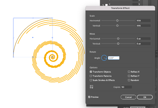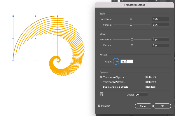 패스를 선택하고 Effect > Distort & Transform > Transform Effect